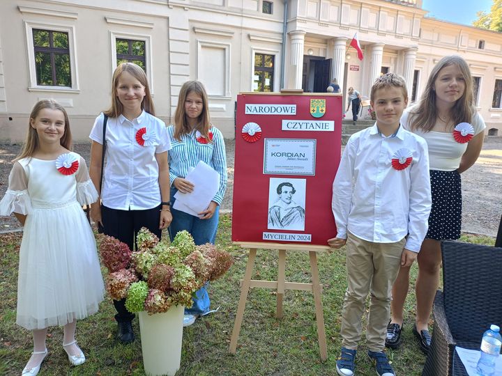 Dziś uczniowie naszej szkoły wzięli udział w zorganizowanym przez Biblioteka Publiczna Gminy Mycielin Narodowym Czytaniu. Odczytano fragmenty ,,Kordiana" Juliusza Słowackiego.