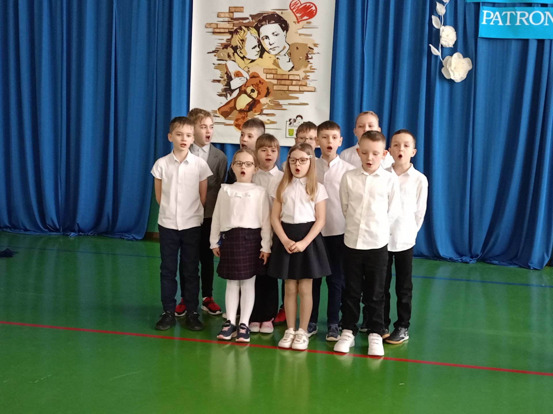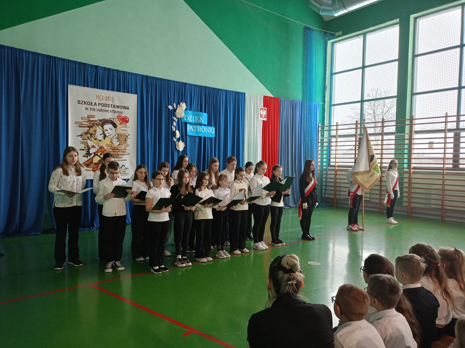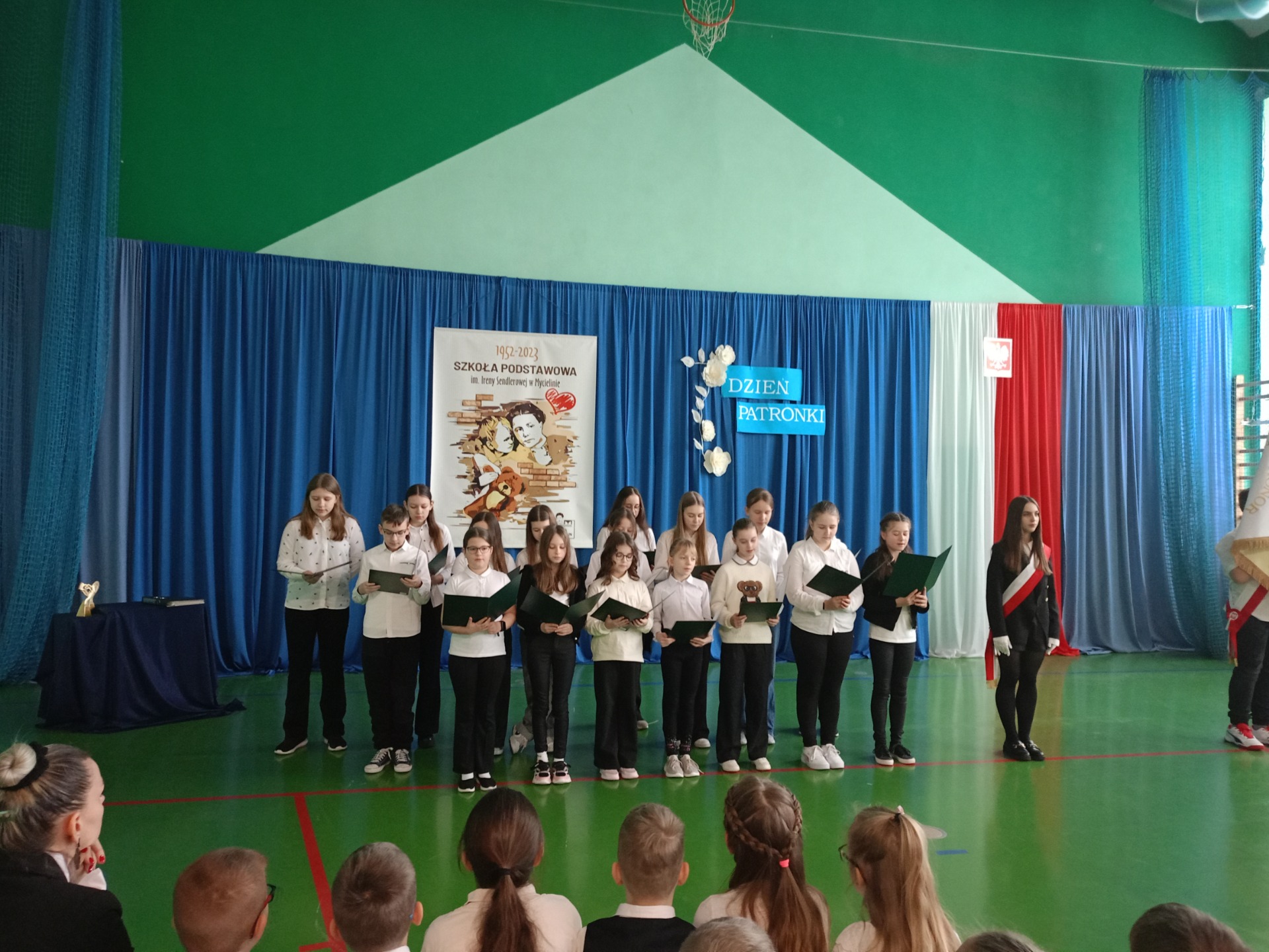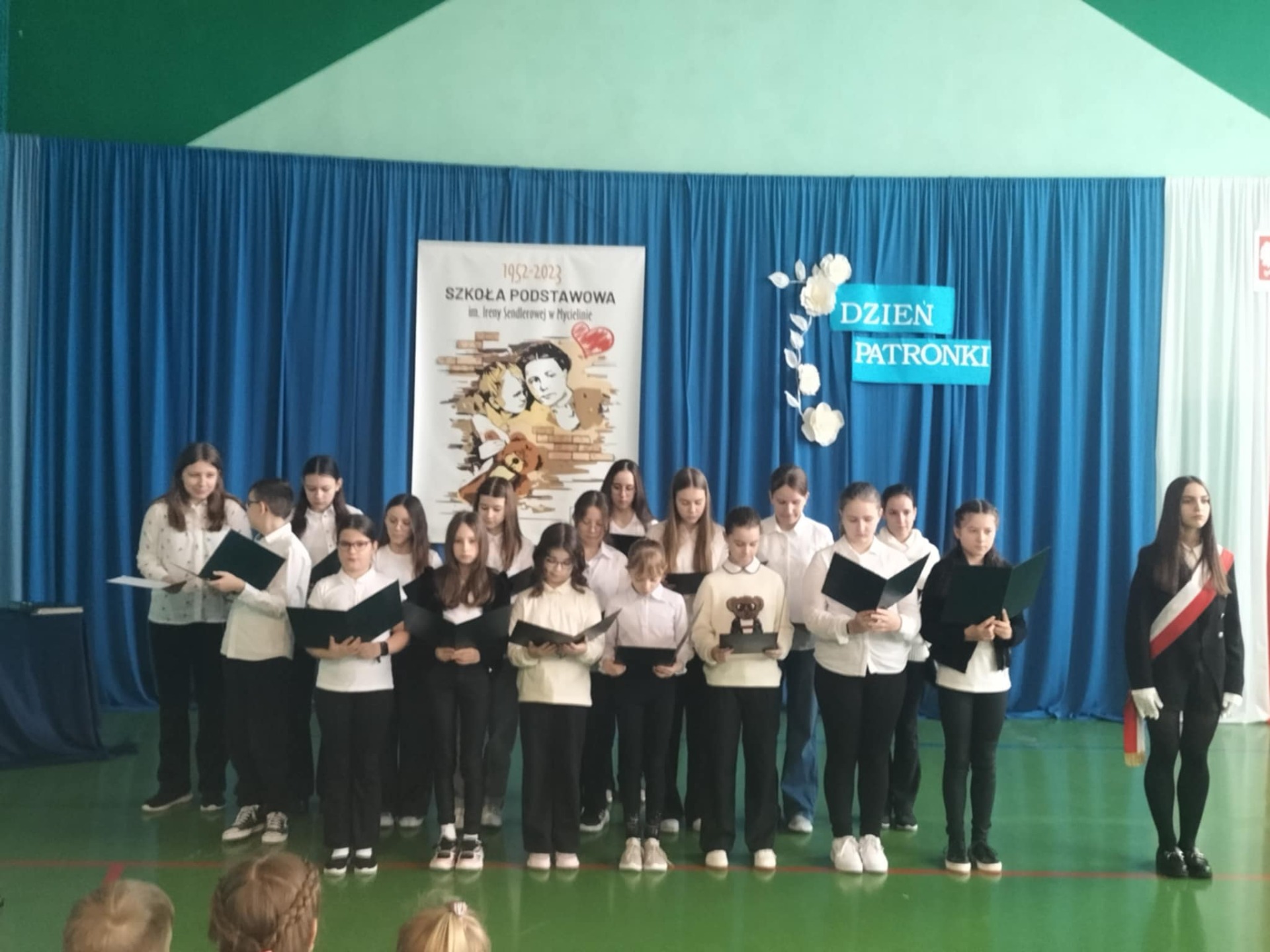 Uroczystość rozpoczęła się od odśpiewania hymnu państwowego oraz hymnu szkoły, co nadało wydarzeniu podniosły charakter. Następnie młodsze i starsze dziecięce chóry zaprezentowały okolicznościowe piosenki, oddając hołd Irenie Sendlerowej poprzez muzykę i słowo.