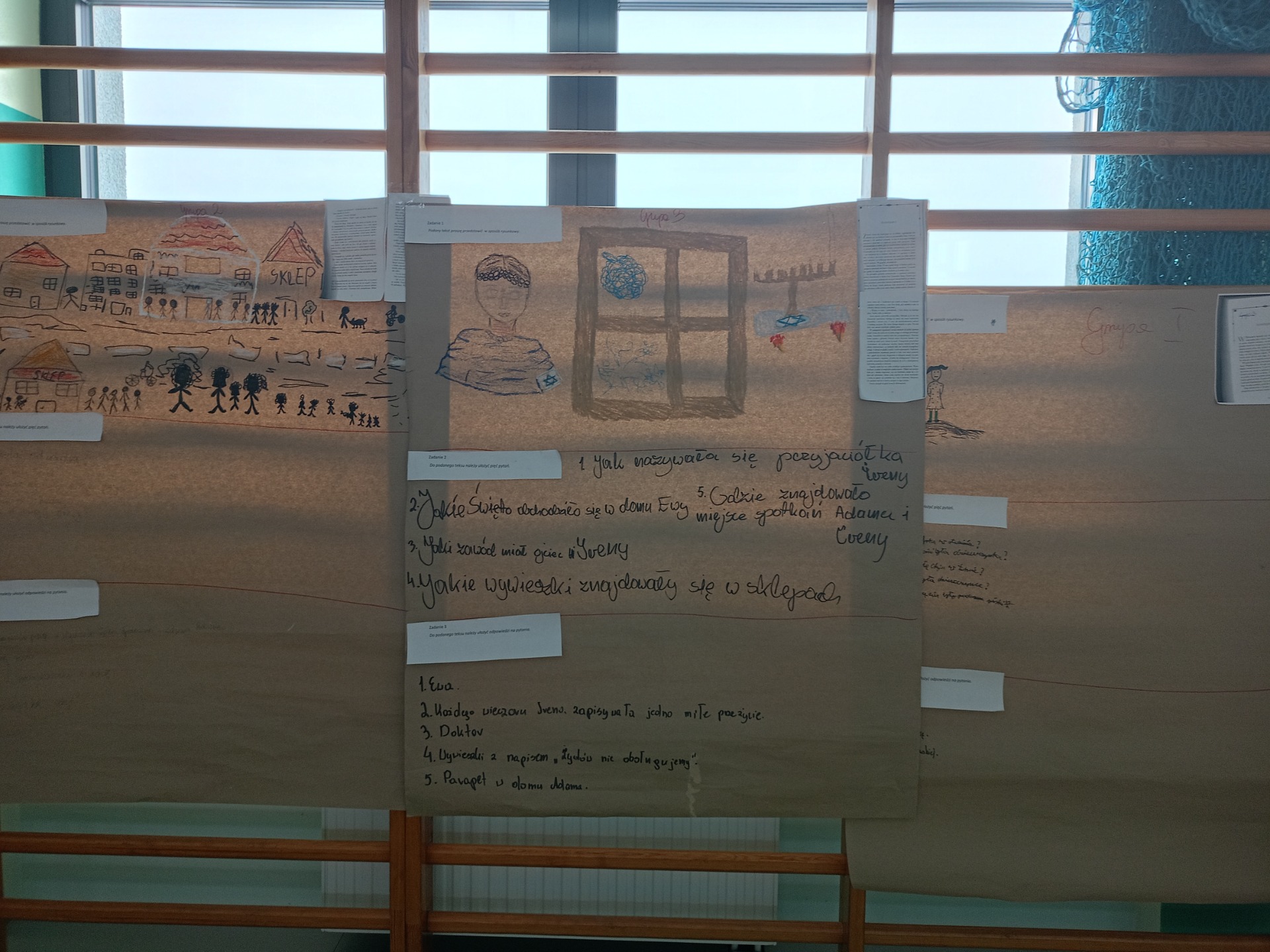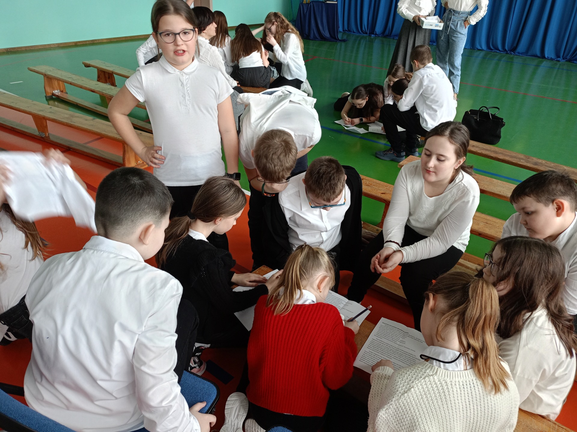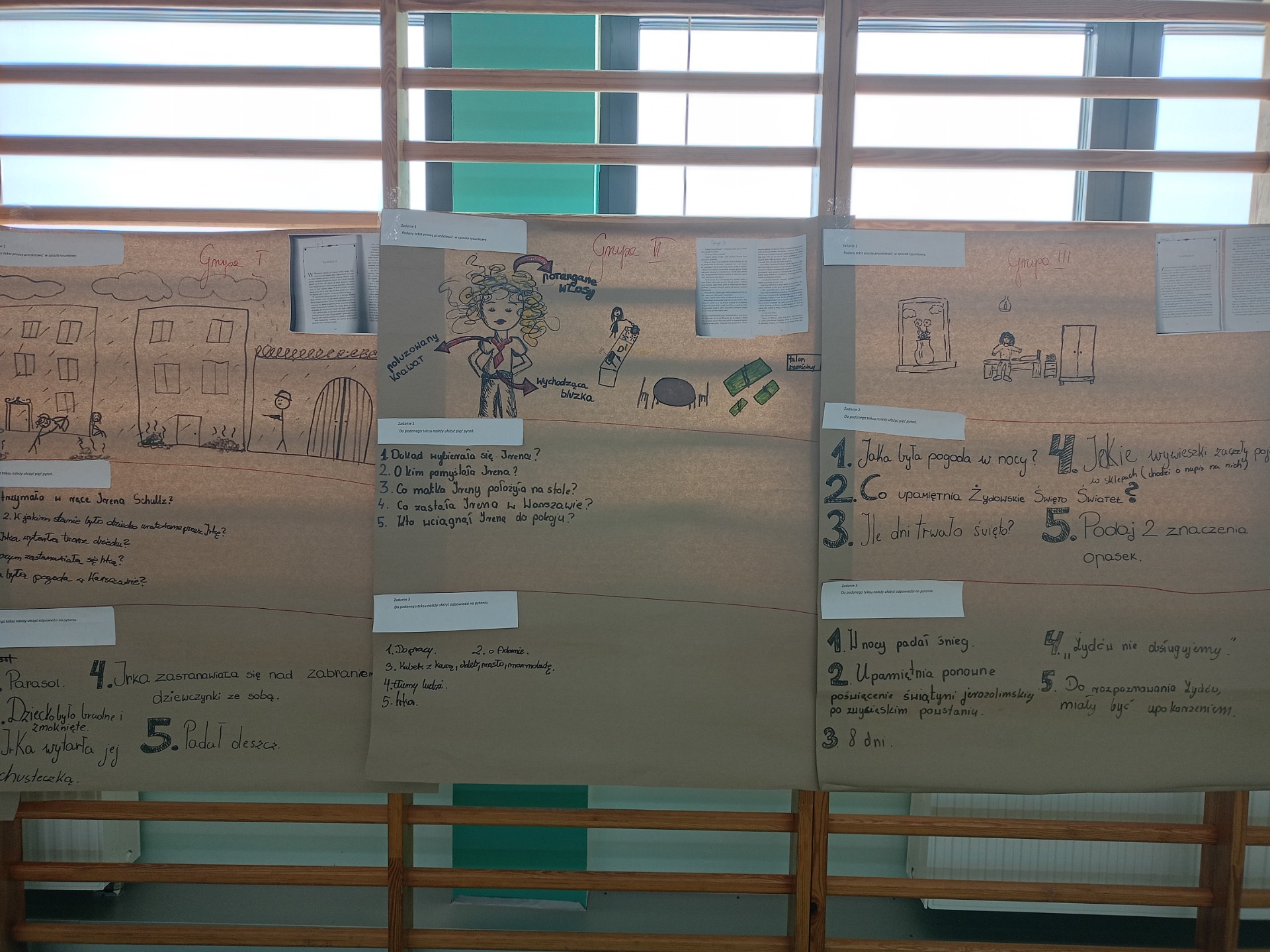 Po części artystycznej uczniowie przystąpili do aktywizujących zadań edukacyjnych, których celem było pogłębienie wiedzy na temat życia i działalności Patronki. Pracując w grupach, analizowali fragmenty książek poświęconych Irenie Sendlerowej, co pozwoliło im lepiej zrozumieć jej odwagę, poświęcenie i wielkie serce dla innych.