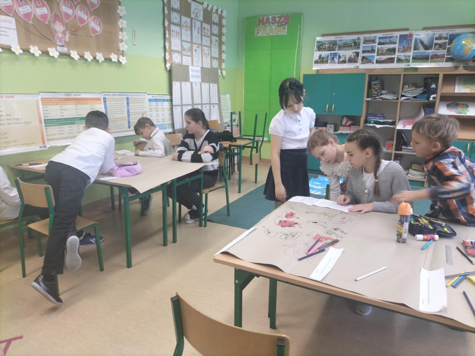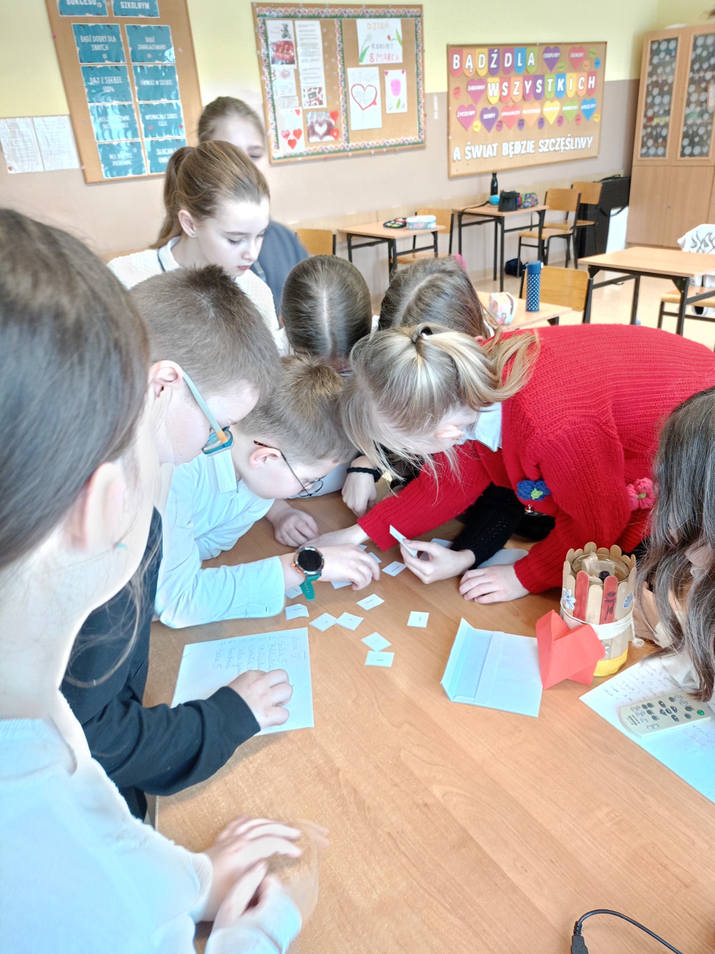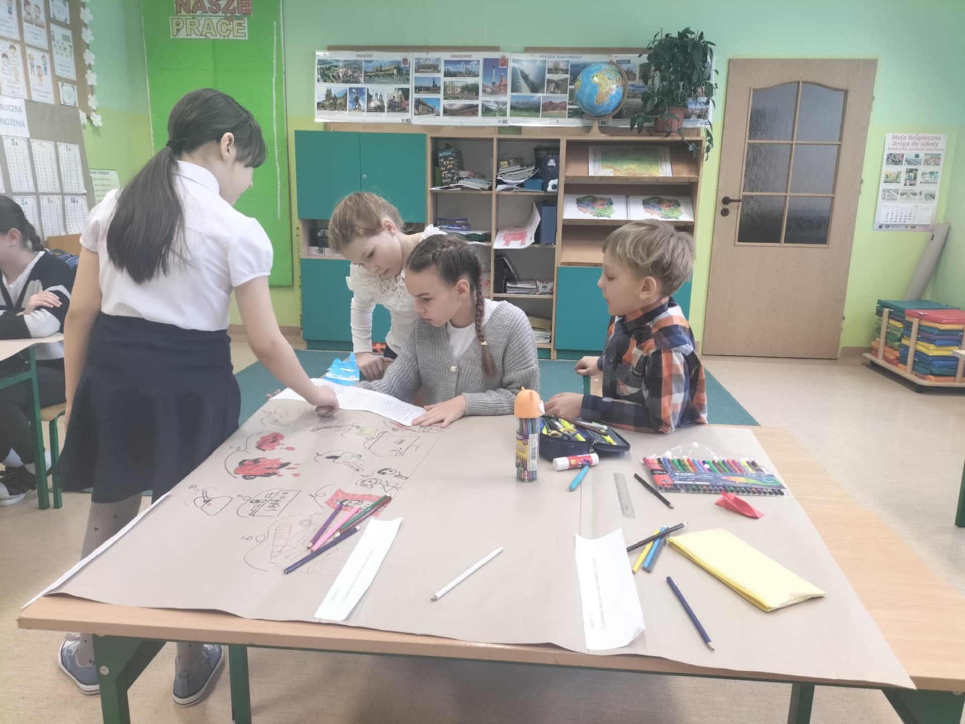 Po części artystycznej uczniowie przystąpili do aktywizujących zadań edukacyjnych, których celem było pogłębienie wiedzy na temat życia i działalności Patronki. Pracując w grupach, analizowali fragmenty książek poświęconych Irenie Sendlerowej, co pozwoliło im lepiej zrozumieć jej odwagę, poświęcenie i wielkie serce dla innych.