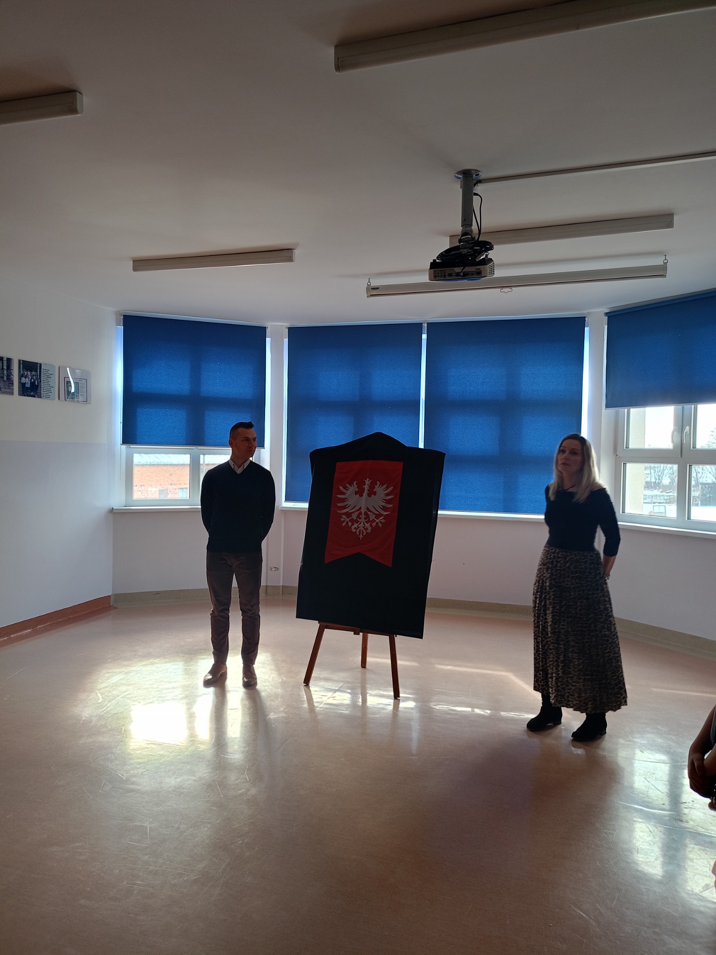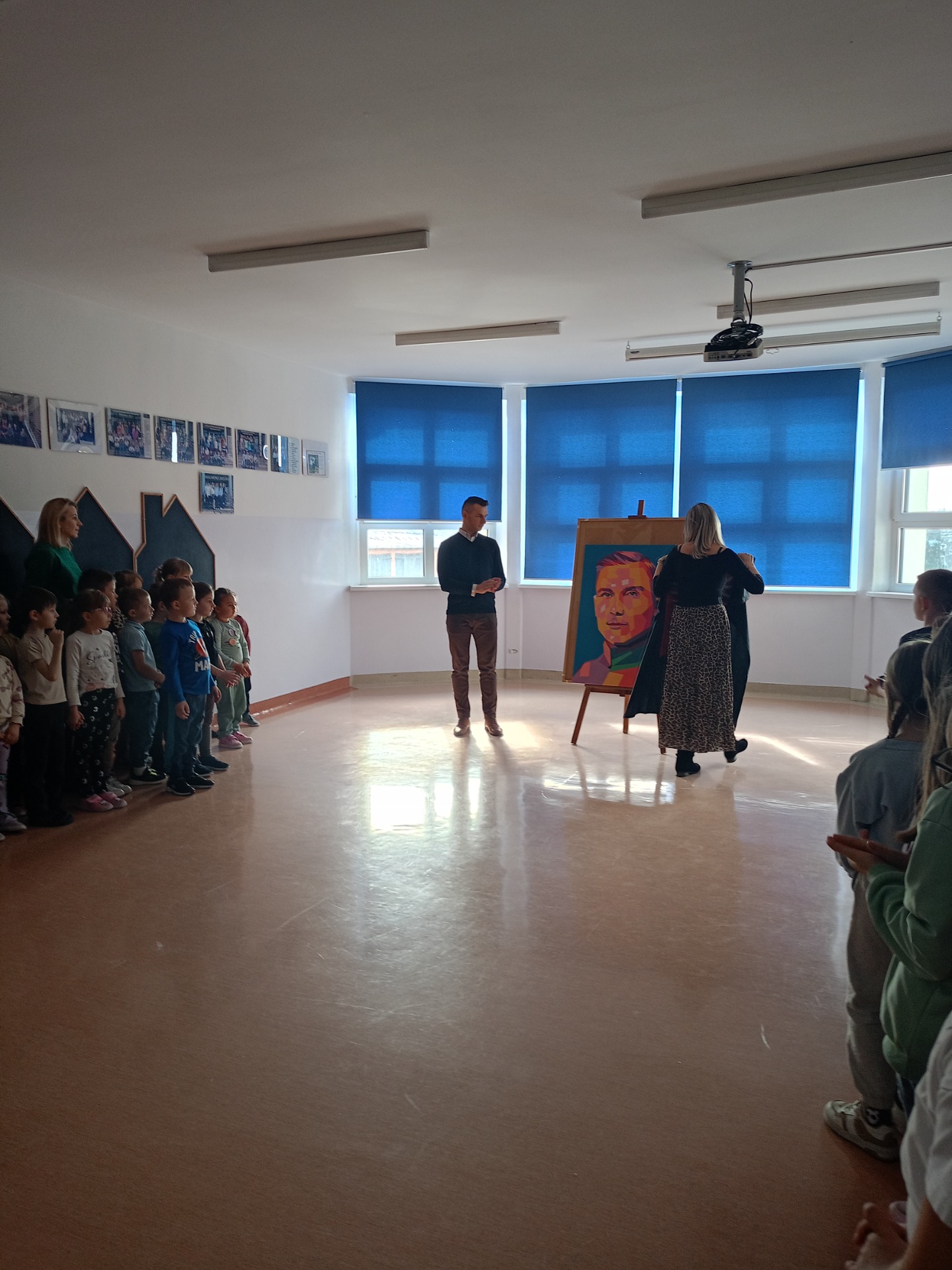 Dziś w naszej placówce miało miejsce istotne wydarzenie kulturalne. Do szkoły przybył malarz i artysta p. Jakub Multan, który w obecności zgromadzonych uczniów, nauczycieli oraz pracowników obsługi dokonał przy pomocy p. Ewy Kozyry odsłonięcia obrazu z cyklu "Powstańcy Wielkopolscy". Wystawa prezentowana przez lokalnego twórcę ma na celu upamiętnienie bohaterów Powstania Wielkopolskiego, które miało miejsce w latach 1918-1919. Powstanie to było zbrojnym zrywem mieszkańców Wielkopolski, którzy dążyli do przyłączenia tych ziem do odradzającego się państwa polskiego po I wojnie światowej.