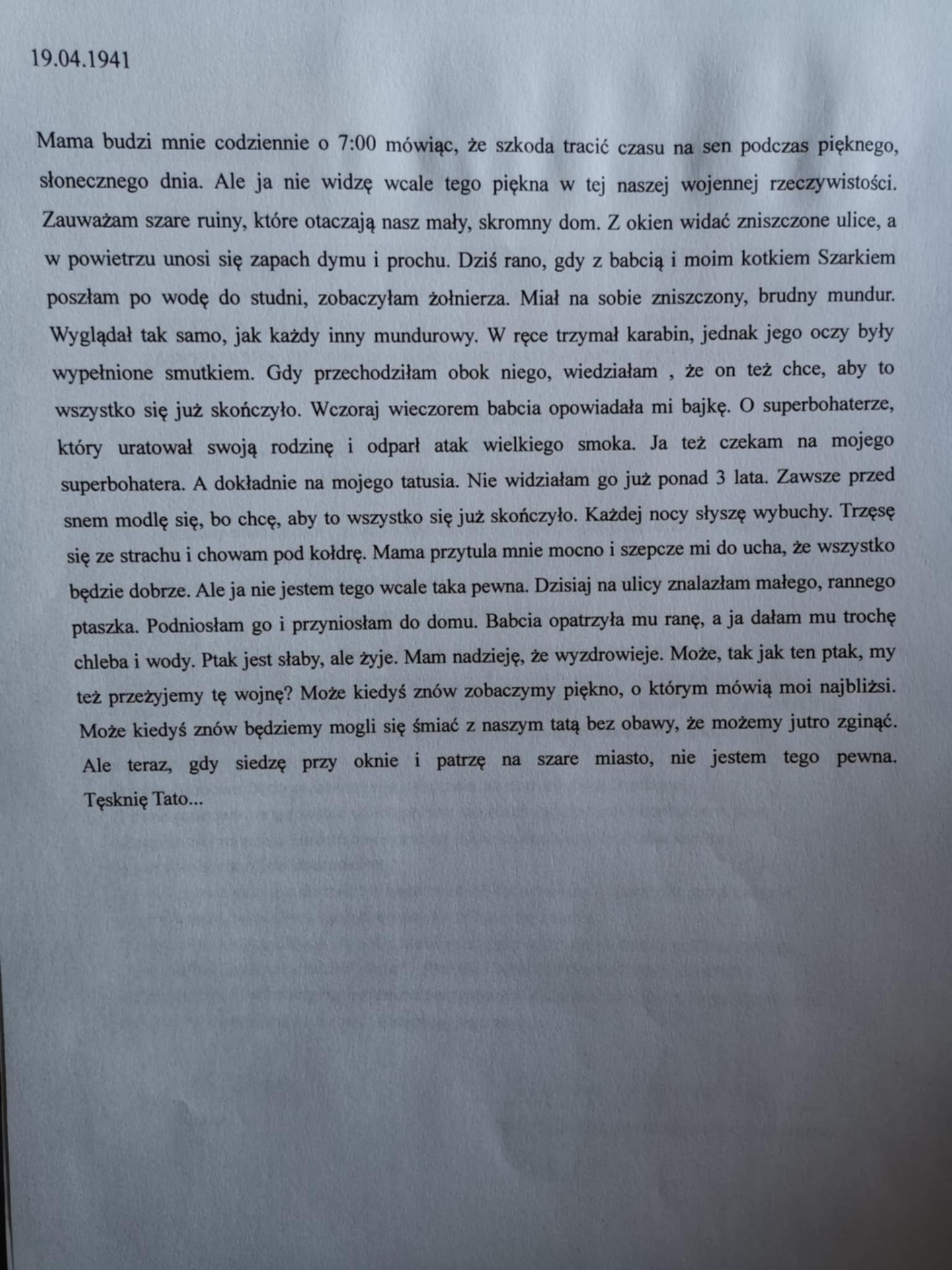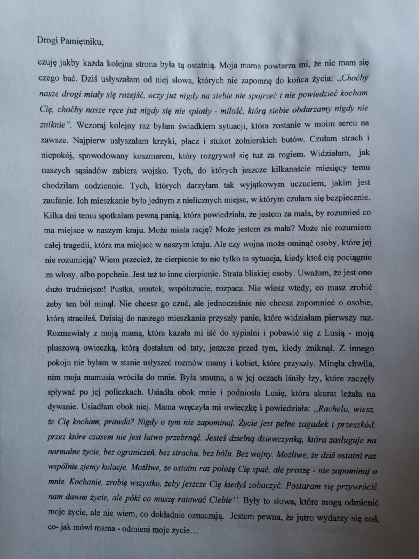 W tej kategorii młodzi adepci pióra – Oliwia Kaczmarek oraz Bartłomiej Bartoszczyk - napisali kartkę z pamiętnika z perspektywy żydowskiego dziecka, oddając emocje i dramatyzm tamtych wydarzeń.