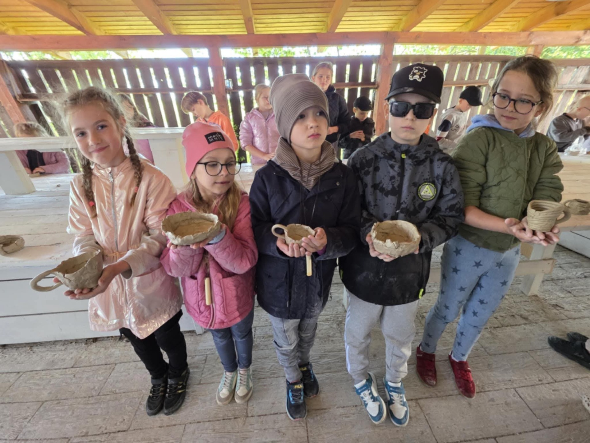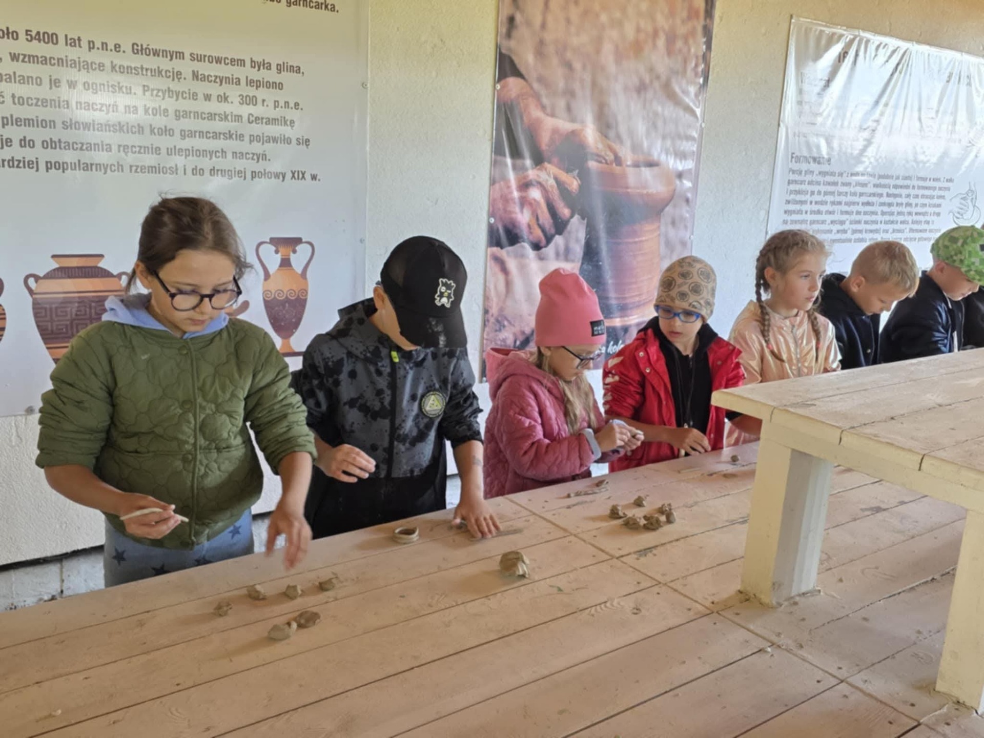 Uczniowie uczestniczyli w ciekawych warsztatach edukacyjnych, podczas których mogli własnoręcznie wykonać gliniane naczynia.