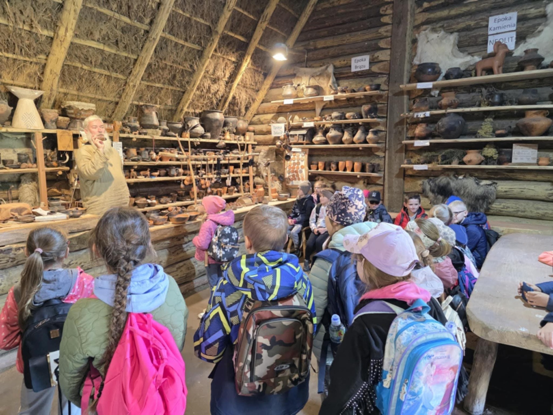 29 maja uczniowie klas 1–3 wybrali się na wycieczkę do Biskupina – jednego z najważniejszych stanowisk archeologicznych w Polsce. Podczas wizyty dzieci miały okazję zobaczyć zrekonstruowaną osadę sprzed ponad 2700 lat, poznać życie codzienne dawnych mieszkańców oraz dowiedzieć się, jak wyglądały ich domy, narzędzia i ubrania.