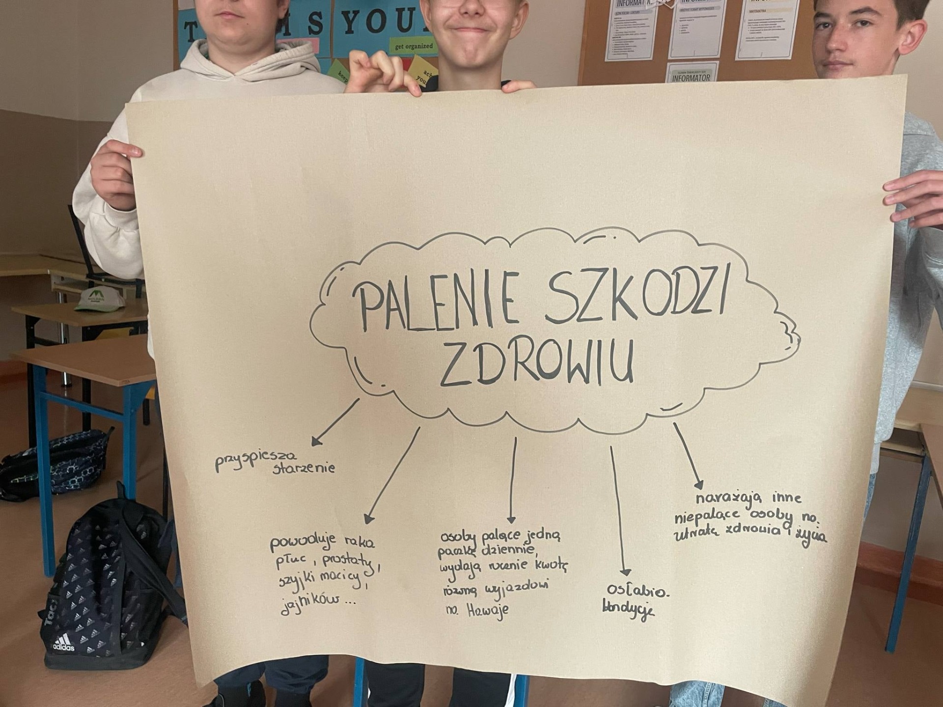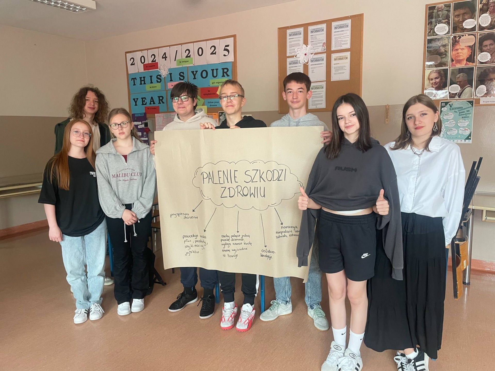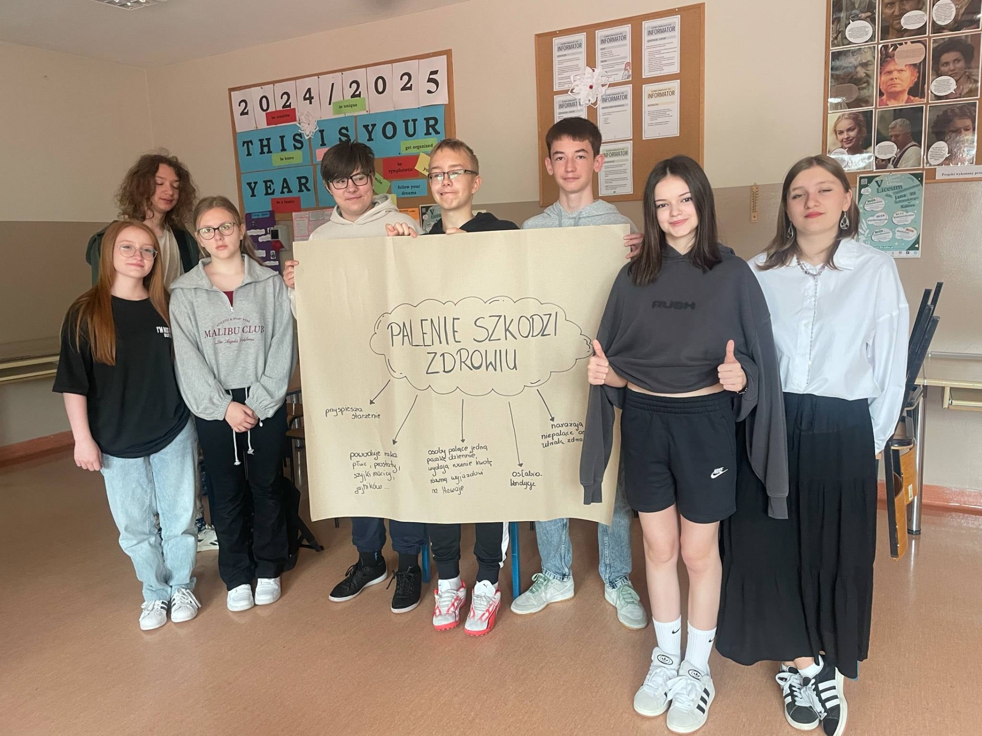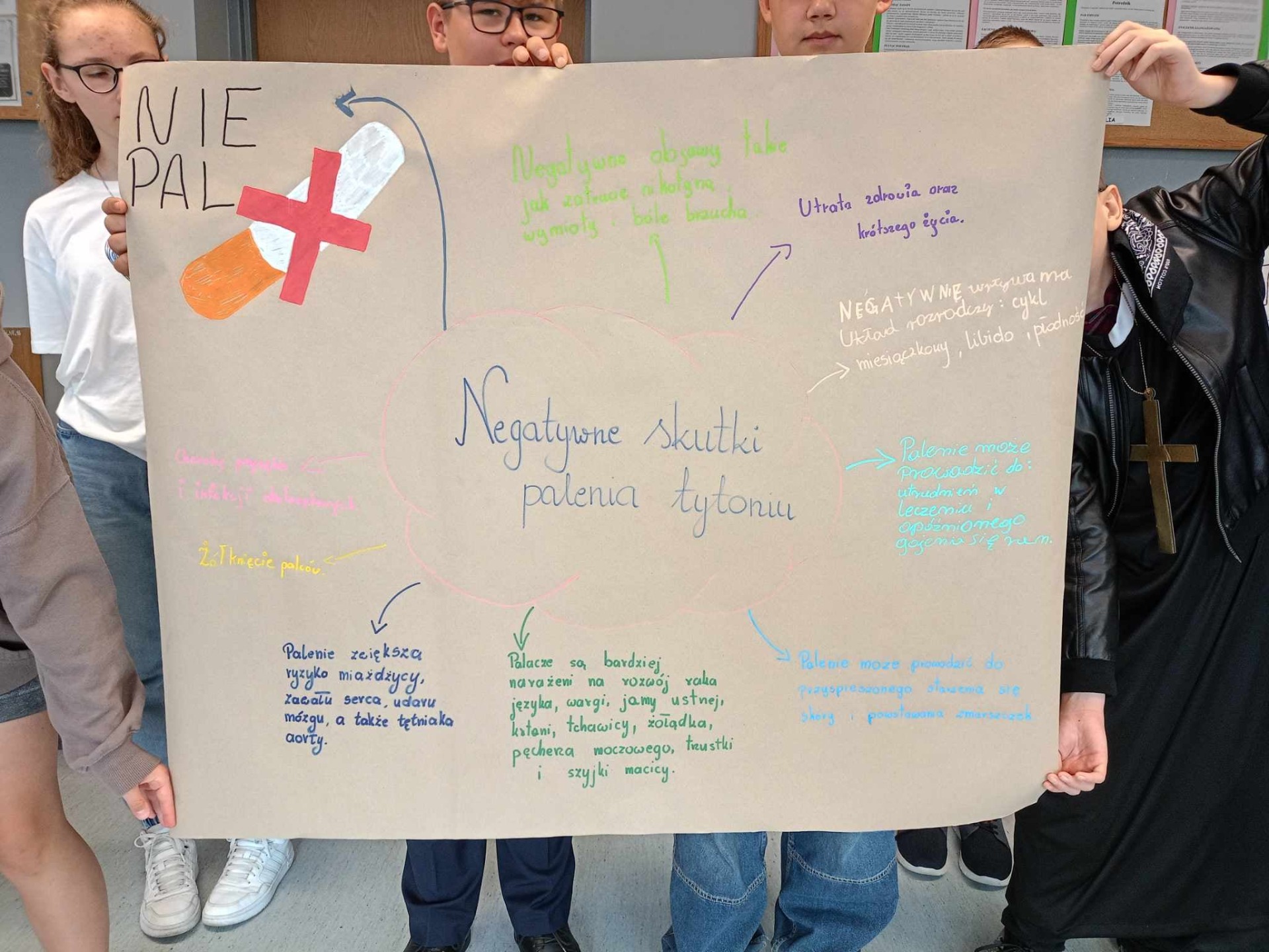 Na zakończenie projektu uczniowie obejrzeli filmy edukacyjne o skutkach palenia i jego wpływie na organizm, a następnie przygotowali plakaty, które w mocny i kreatywny sposób przekazywały przesłanie: "Nie palę – wybieram zdrowie!"