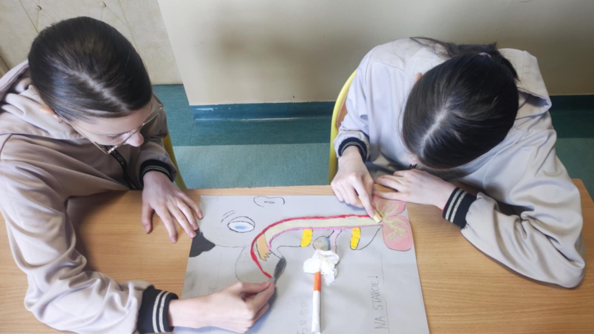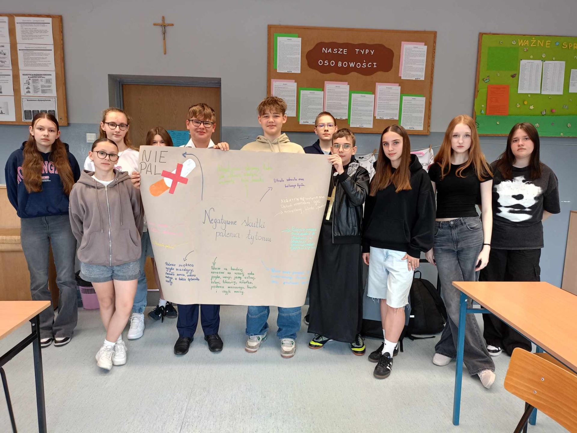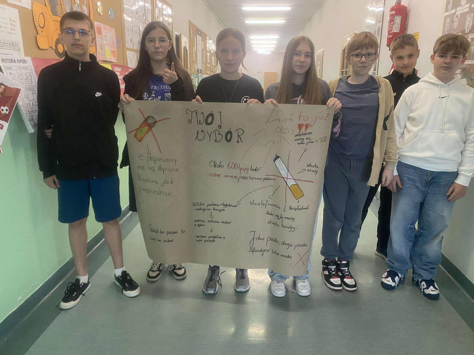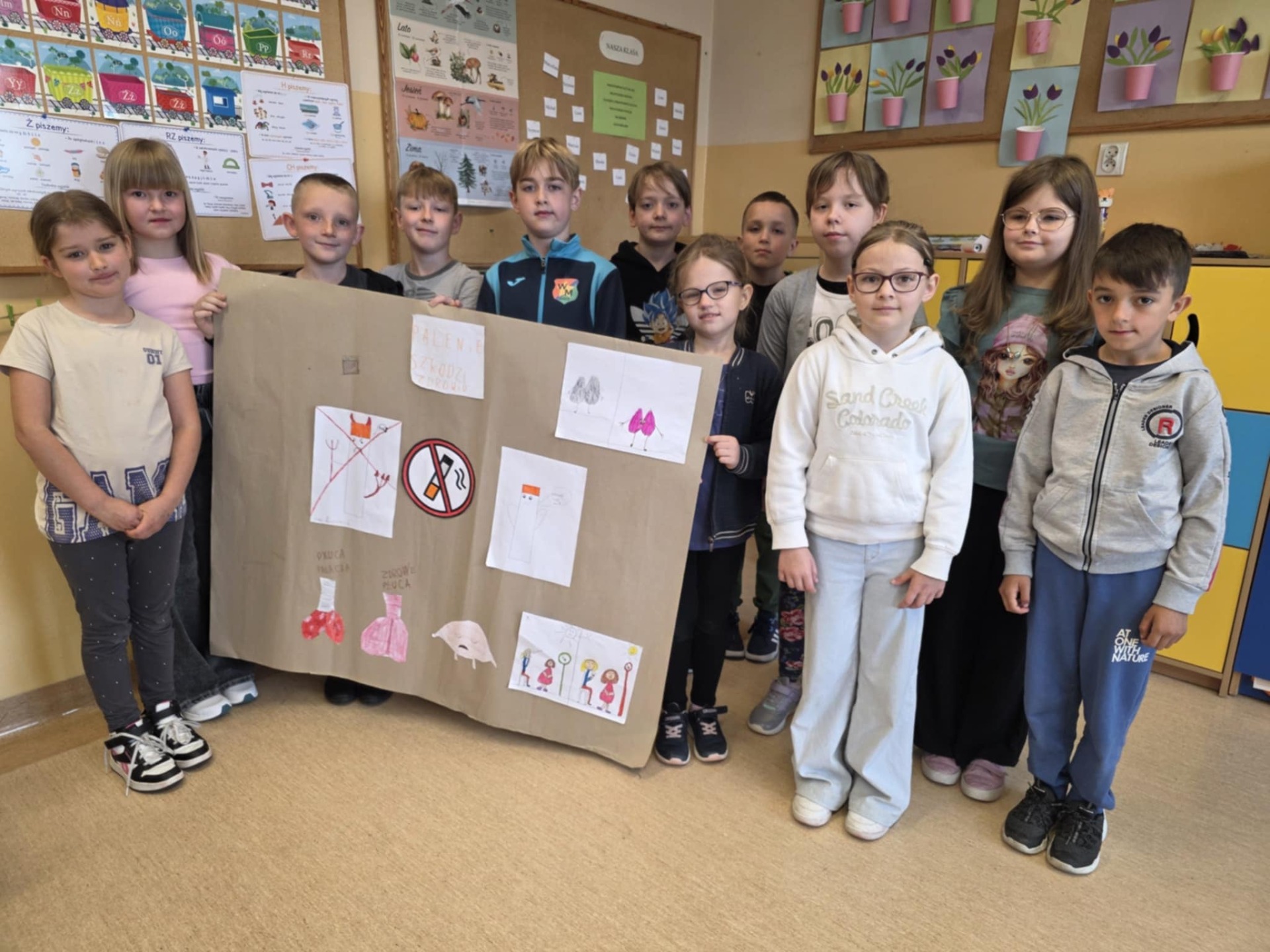 Na zakończenie projektu uczniowie obejrzeli filmy edukacyjne o skutkach palenia i jego wpływie na organizm, a następnie przygotowali plakaty, które w mocny i kreatywny sposób przekazywały przesłanie: "Nie palę – wybieram zdrowie!"