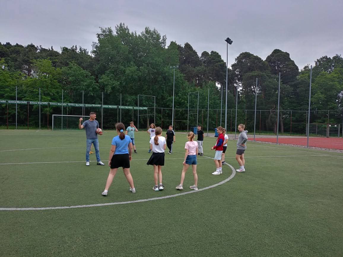 Po części teoretycznej uczniowie wzięli udział w krótkim pokazie ćwiczeń sportowych, które na co dzień wykonują młodzi piłkarze. Zajęcia odbyły się na boisku szkolnym i zawierały elementy rozgrzewki, zabawy ruchowe z piłką oraz podstawowe ćwiczenia koordynacyjne i techniczne.Cieszyły się dużym zainteresowaniem i zaangażowaniem ze strony uczniów. Była to ciekawa forma nauki przez doświadczenie, która pozwoliła dzieciom lepiej zrozumieć specyfikę pracy trenera oraz zachęciła do aktywności fizycznej i rozwijania sportowych pasji.