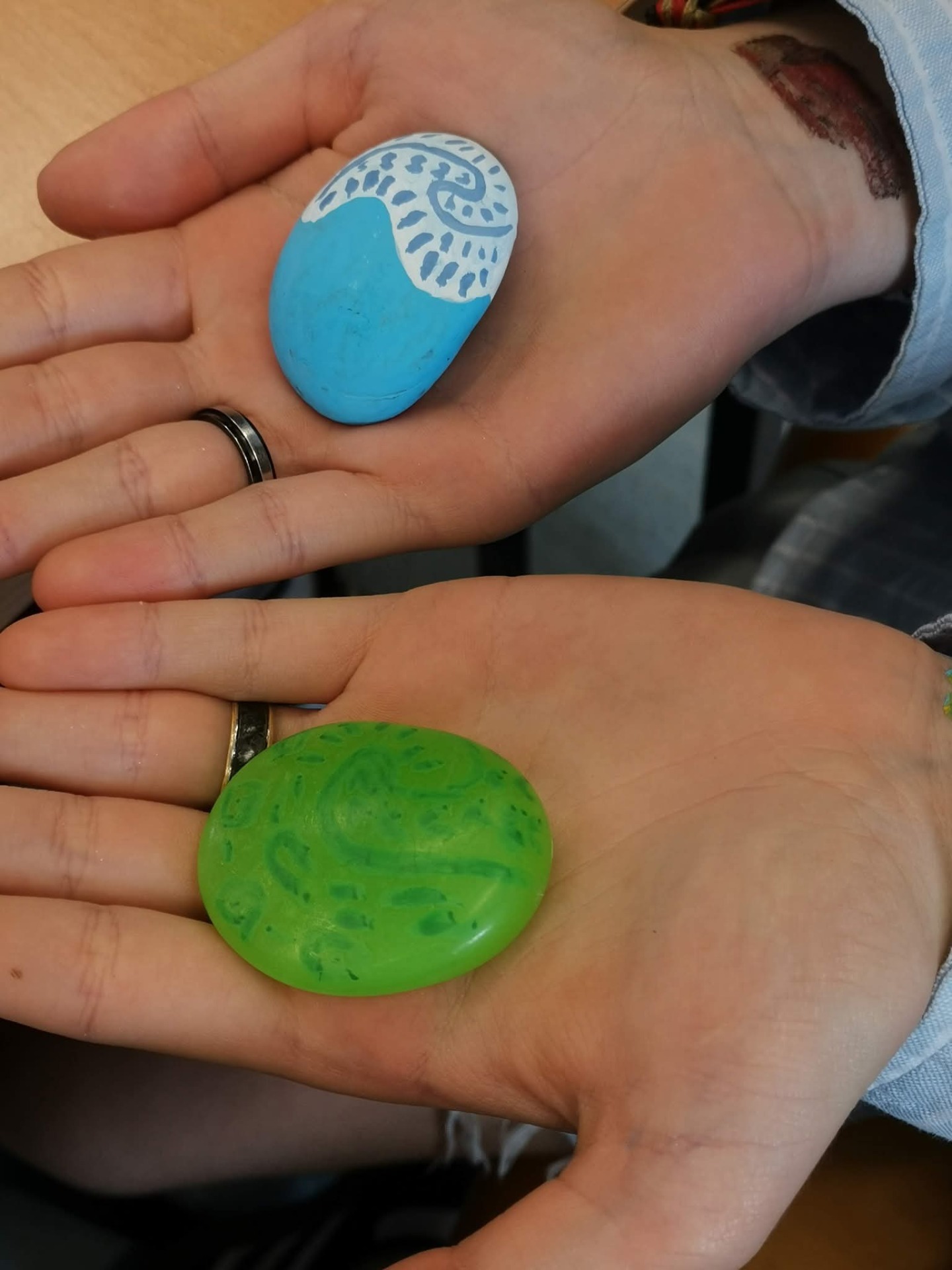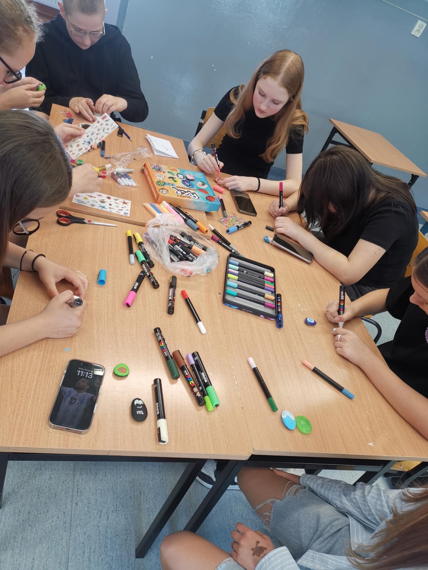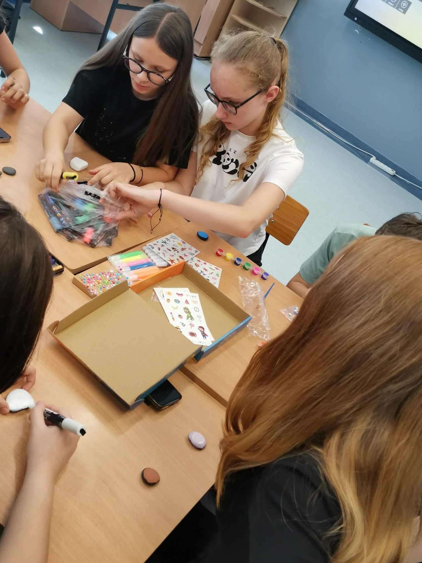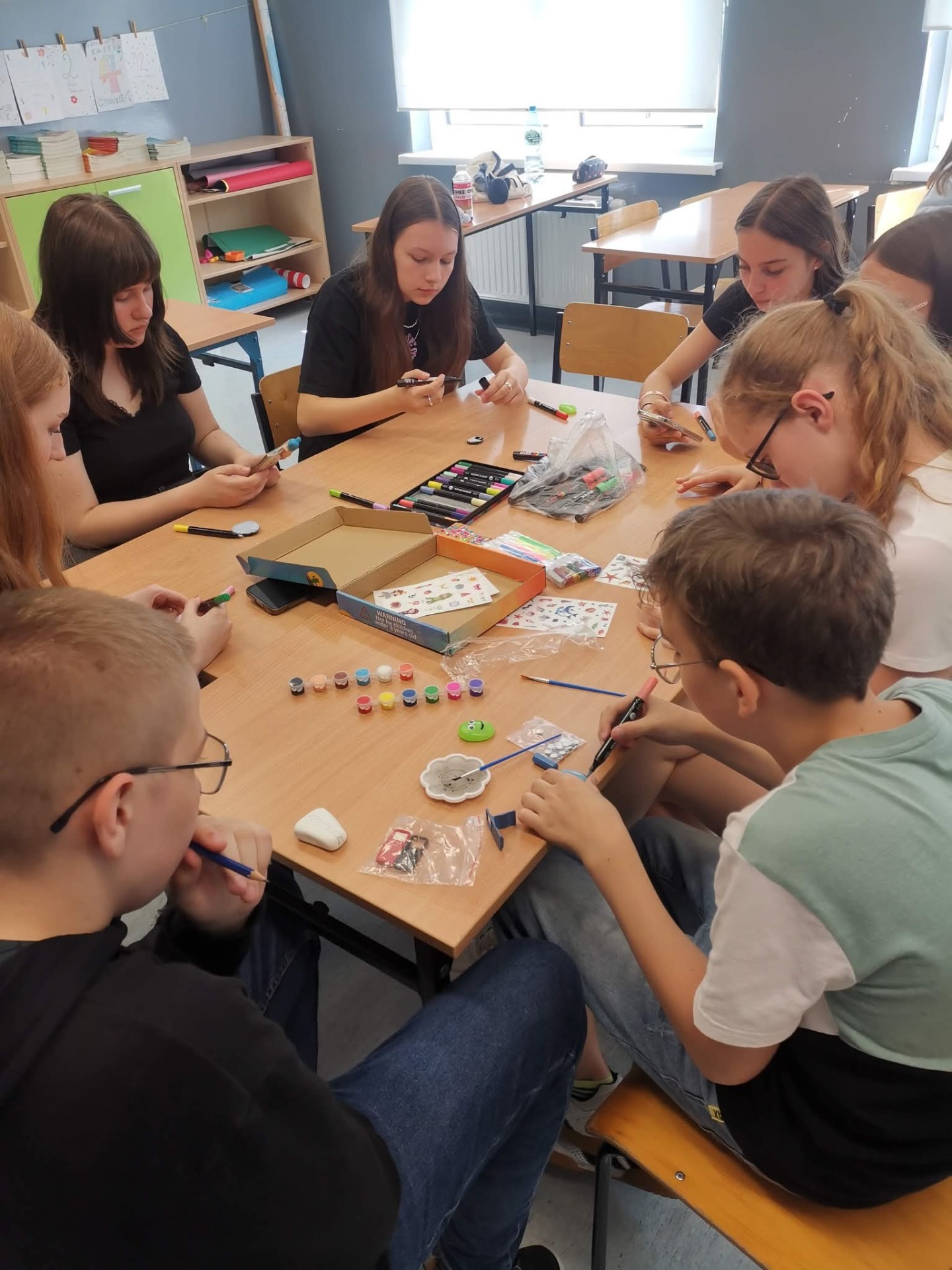 Podczas godziny z wychowawcą uczniowie klasy siódmej zamienili się w prawdziwych artystów! Tworzyli piękne dekoracje z kamyków – nie zabrakło kreatywności, cierpliwości i dobrej zabawy. Efekty ich pracy zaskakują pomysłowością i starannością wykonania.