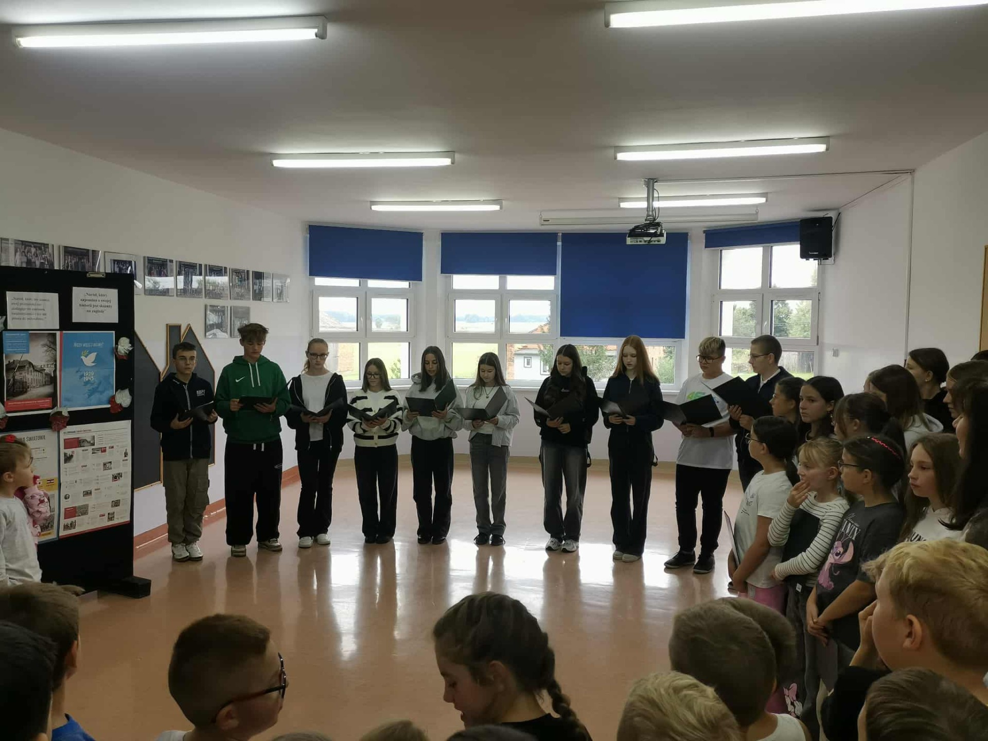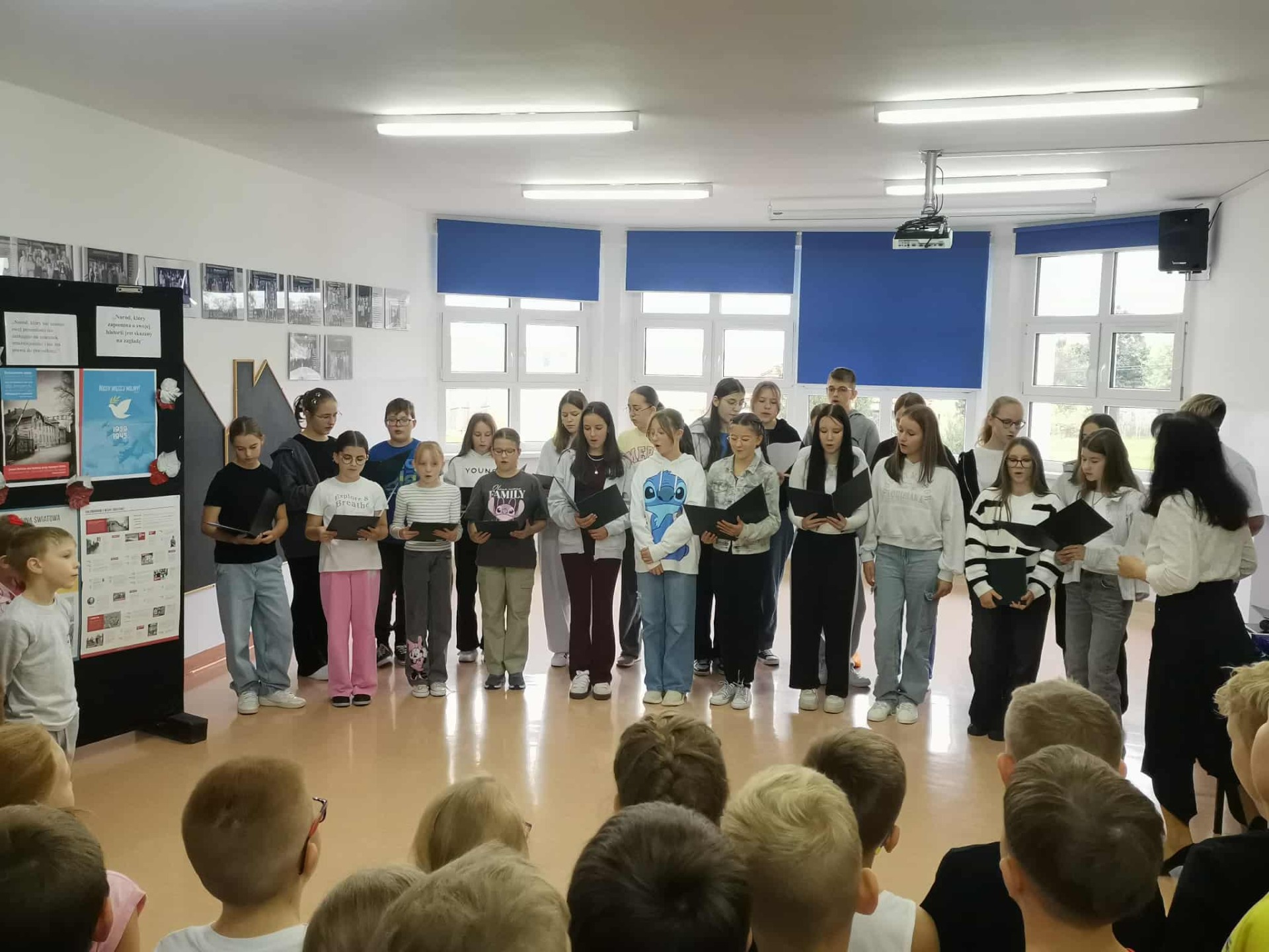 Dziś w naszej szkole odbył się apel upamiętniający 86. rocznicę wybuchu II wojny światowej. Uczniowie klasy VIII przygotowali program artystyczny, który przypomniał o tragicznych wydarzeniach z 1939 roku oraz o ogromnym poświęceniu i cierpieniu milionów ludzi podczas wojny. Ponadto podczas apelu wybrzmiały pieśni żołnierskie i wojenne, które zostały odśpiewane przez szkolny chór. Była to też ważna lekcja historii i pamięci, która uświadomiła uczniom, jak wielką wartością jest pokój i wolność.