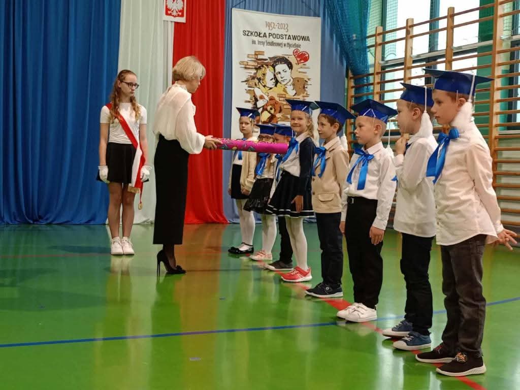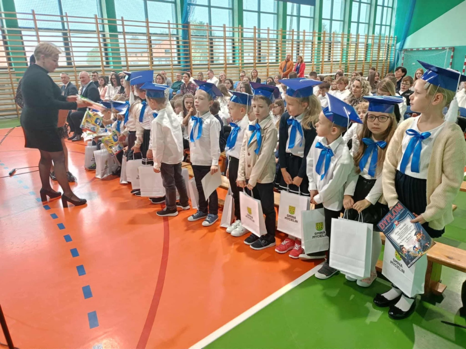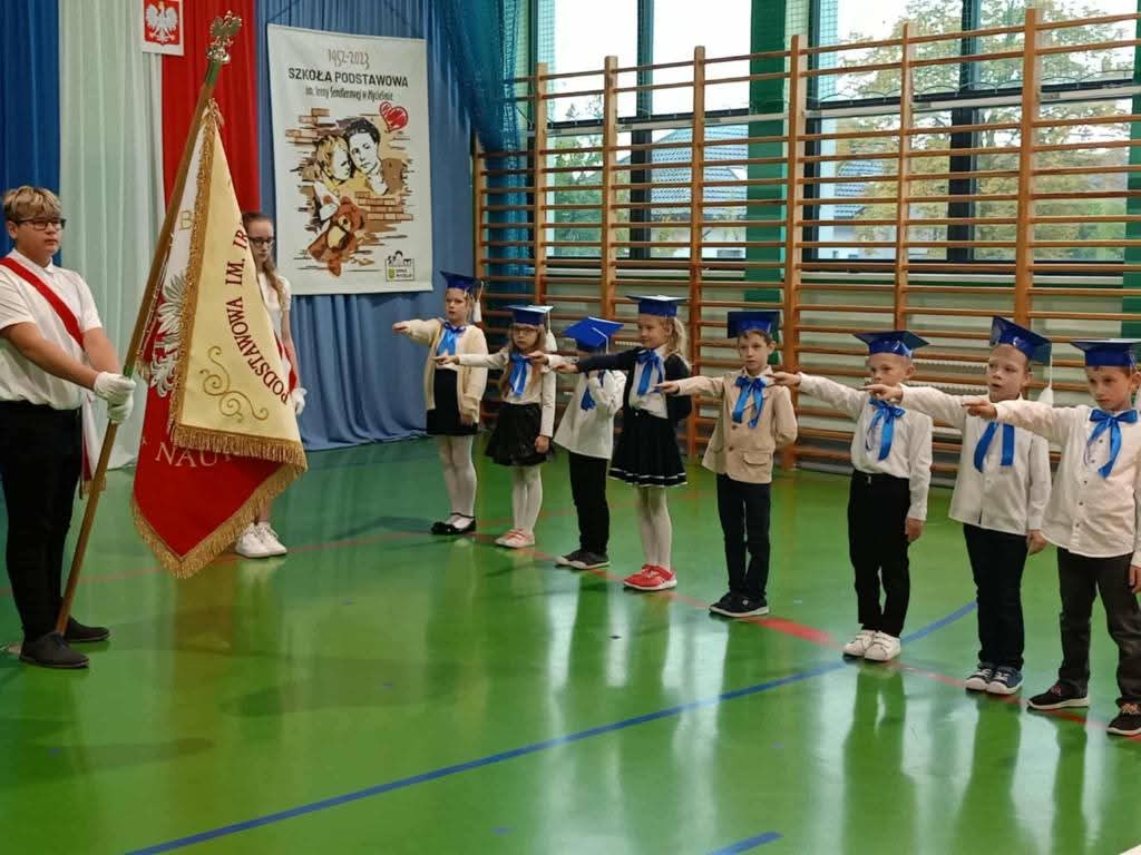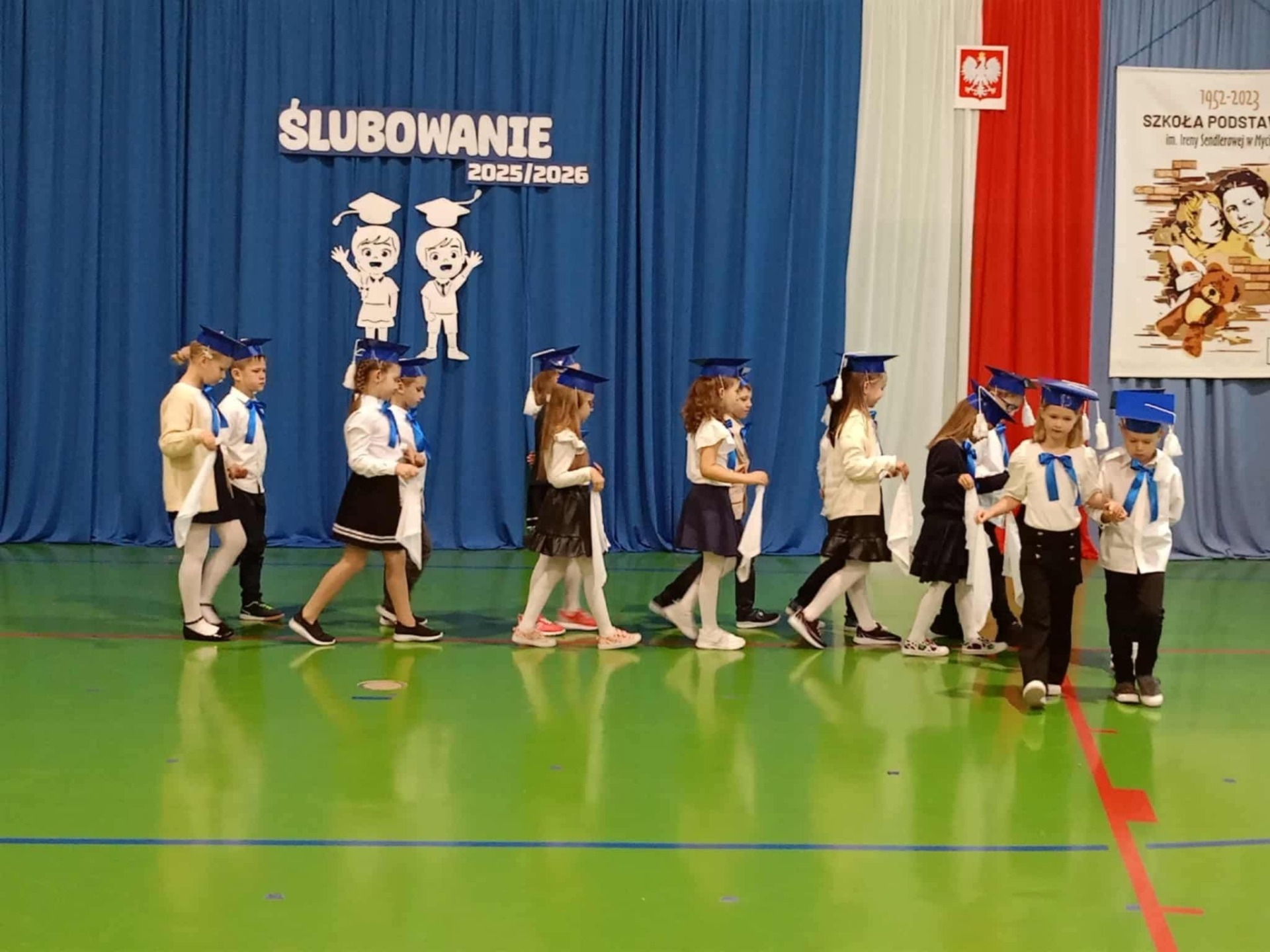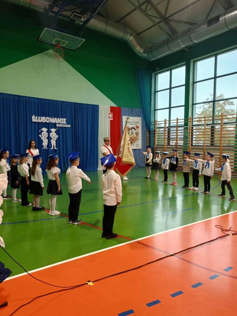 14 października w naszej szkole odbyła się uroczystość ślubowania i pasowania na ucznia – jedno z najpiękniejszych i najbardziej wzruszających wydarzeń w roku szkolnym. Pierwszoklasiści, pełni emocji i dumy, zaprezentowali program artystyczny, w którym nie zabrakło dostojnego poloneza, pięknych wierszy, radosnych piosenek oraz tańca pełnego energii i uśmiechu. W tym wyjątkowym dniu obecni byli zaproszeni goście, rodzice, pracownicy szkoły oraz uczniowie starszych klas, którzy z wielkim wzruszeniem obserwowali swoich młodszych kolegów. Cała uroczystość przebiegła w podniosłej, a zarazem ciepłej atmosferze, niosąc ze sobą wiele emocji, radości i dumy z nowych członków szkolnej społeczności.
