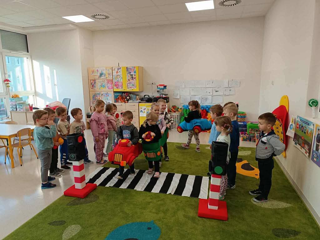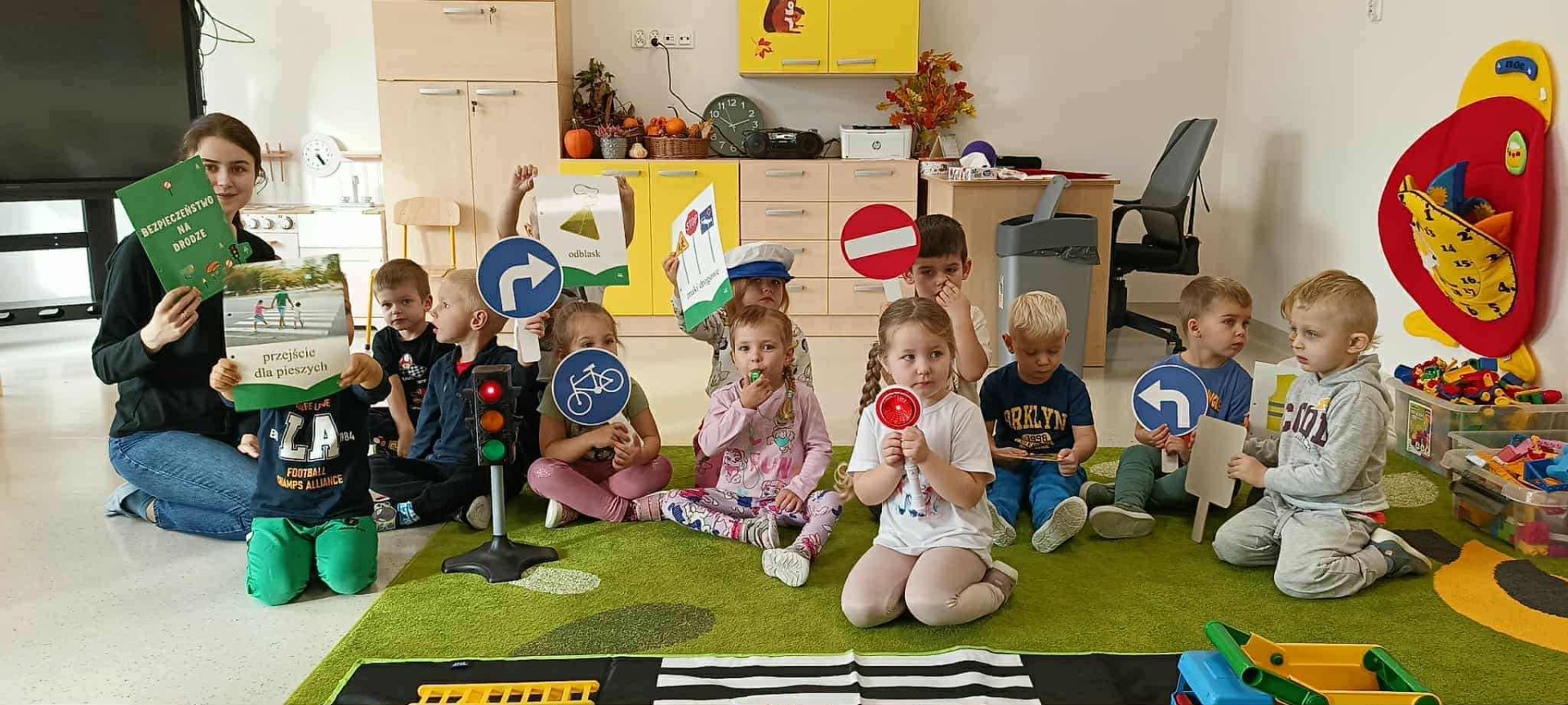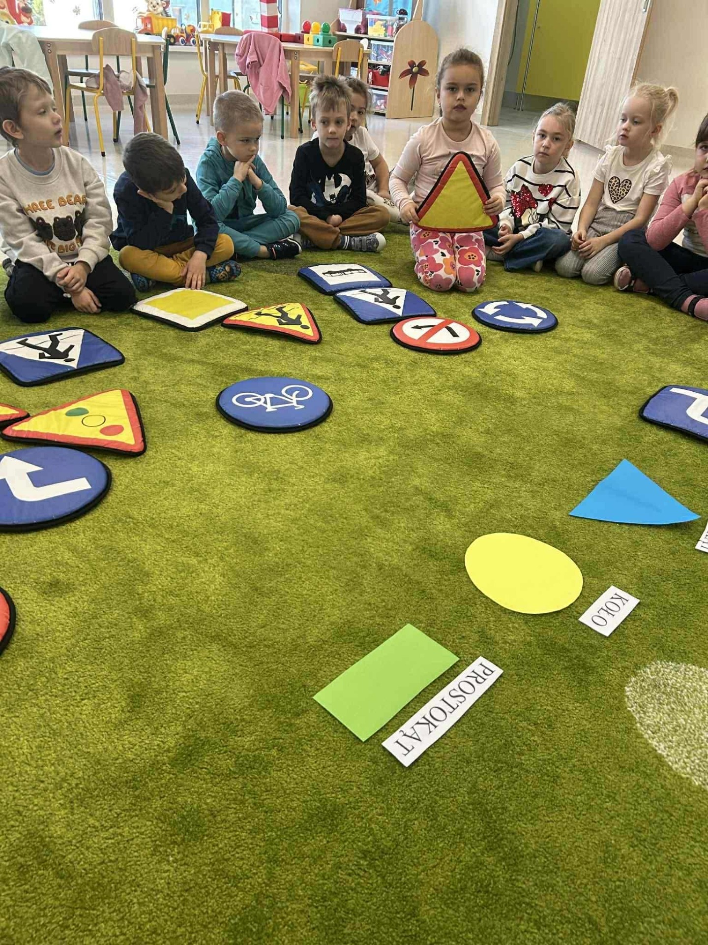 Dzieci z dużym zaangażowaniem uczestniczyły w zajęciach, dzięki którym, w formie zabawy, uczyły się, jak być bezpiecznymi uczestnikami ruchu drogowego.