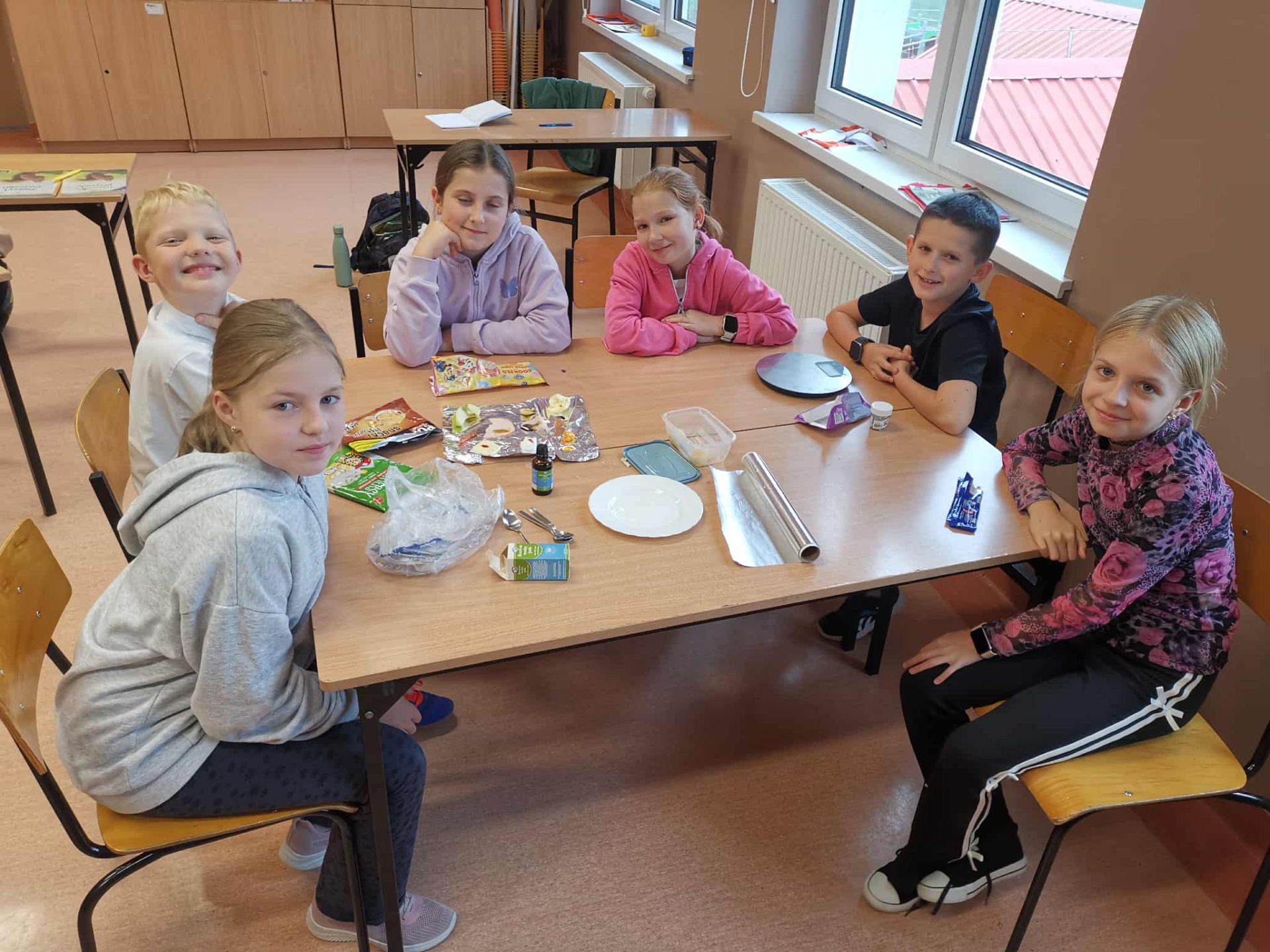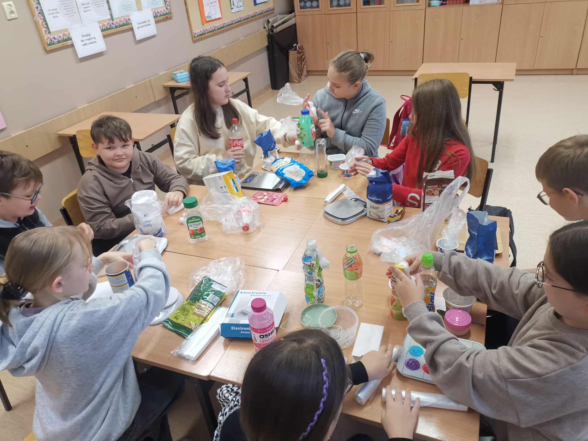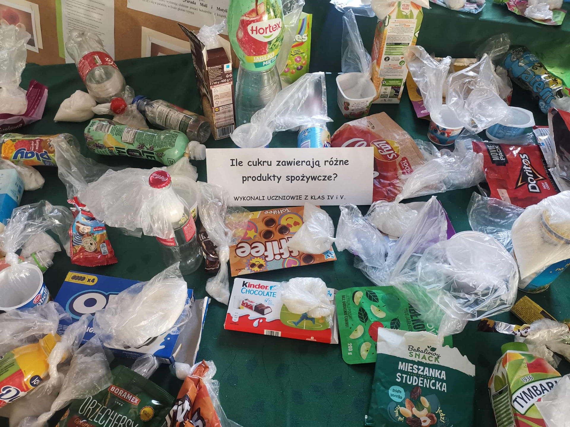 Podczas zajęć z edukacji zdrowotnej uczniowie klas 4 i 5 sprawdzali zawartość cukru w różnych produktach spożywczych. Okazało się, że wiele z nich – nawet tych, które wydają się „zdrowe” – zawiera zaskakująco dużo cukru, np. produkty dla niemowląt czy przyprawy.