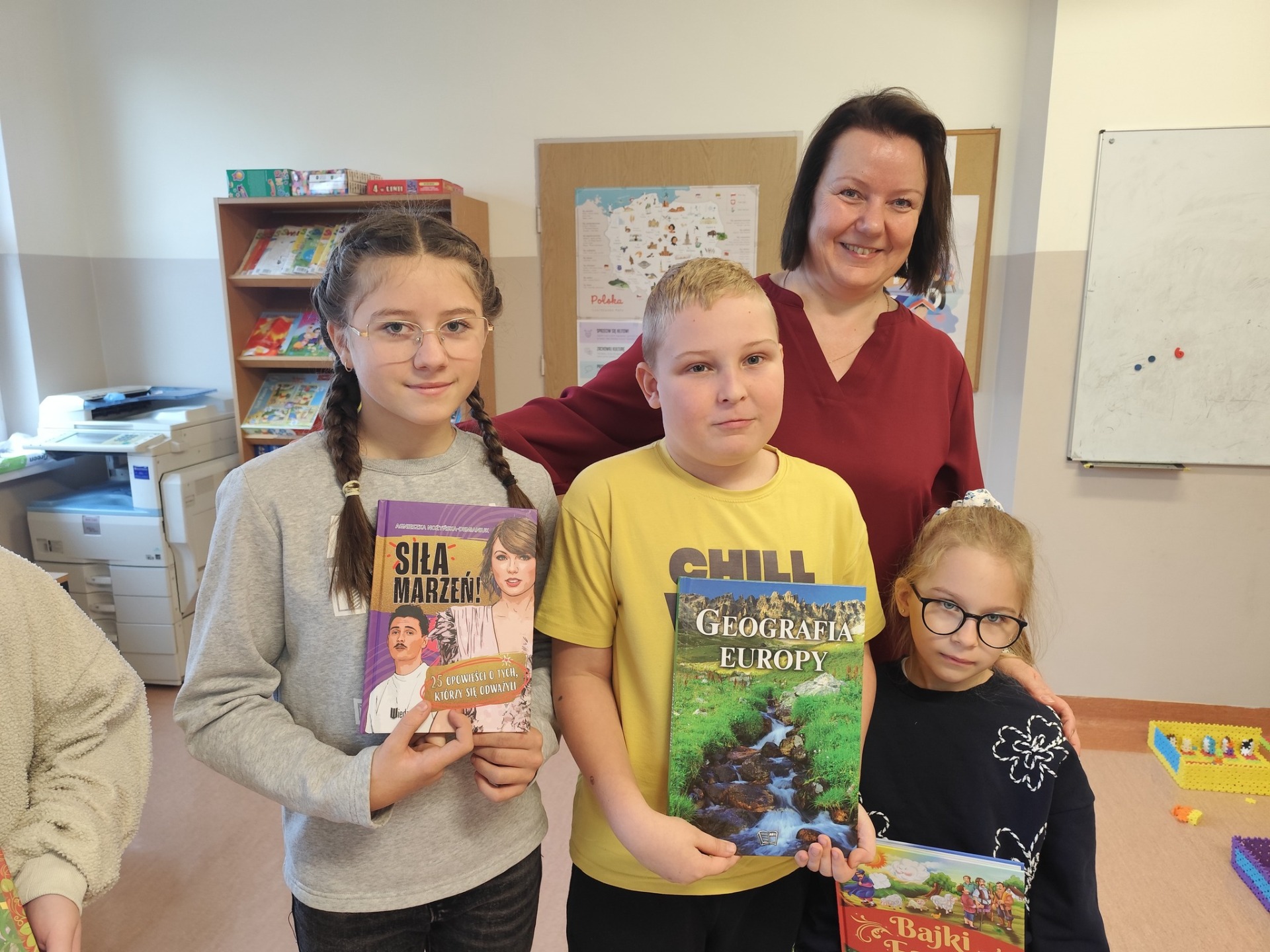 i samodzielnego czytania nadzorowała szkolna bibliotekarka. Starsze uczennice ( podziękowania dla Nataszy Szelągowskiej i Alicji Rosińskiej) czytały bajki młodszym koleżankom – był to „Kwadrans z książką”.