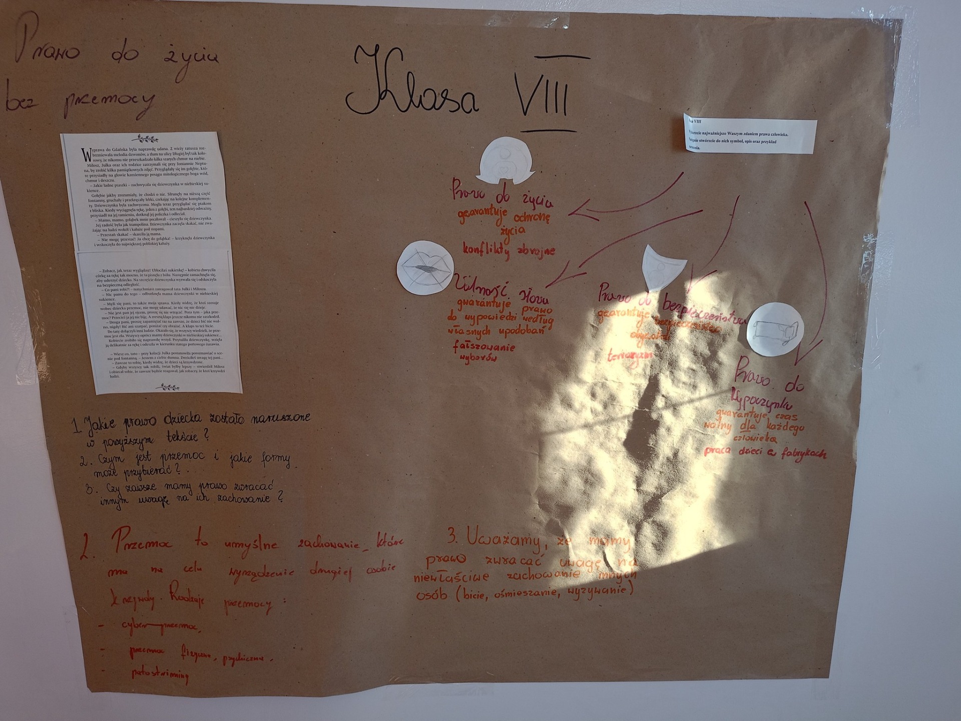 Uczniowie z klas I- III otrzymali trzy zadania oraz zestaw cytatów do ułożenia, dzięki którym mogli lepiej zrozumieć znaczenie poszczególnych praw. Natomiast uczniowie klas IV-VIII pracowali z tekstami poświęconymi prawom dziecka – ich zadaniem było zapoznanie się z treścią materiałów, udzielenie odpowiedzi na pytania oraz wykonanie dodatkowych poleceń rozwijających ich wiedzę i refleksję nad tą ważną tematyką.