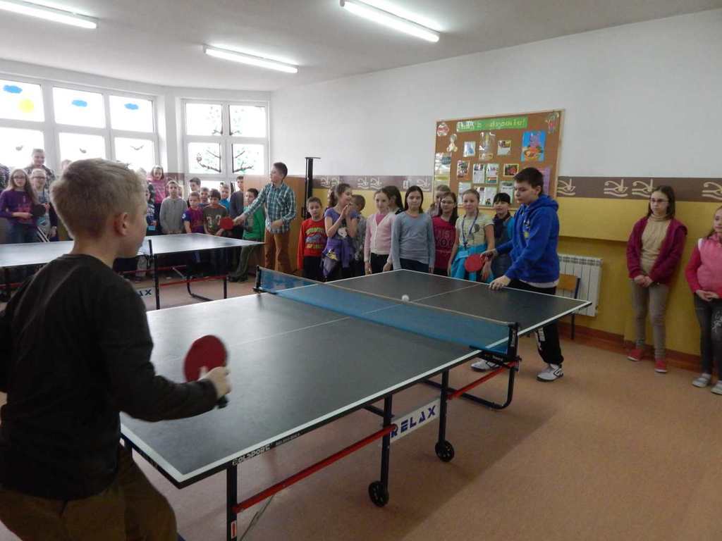 W czasie przerw w naszej szkole wszyscy chętni mogą aktywnie uczestniczyć w rozgrywkach w ping ponga.