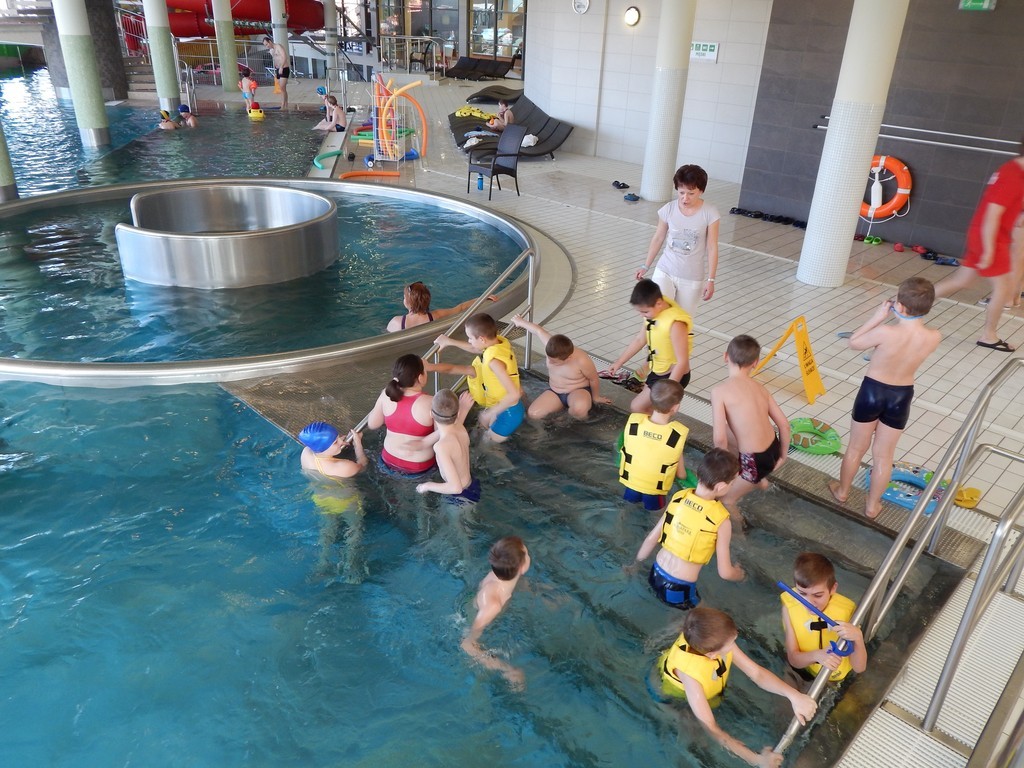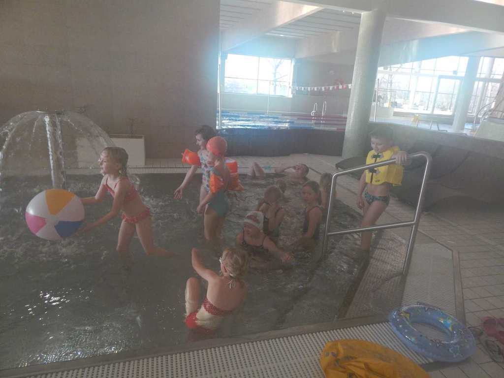 Akcja 3 – uczniowie naszej szkoły w czasie ferii zimowych tj. 05.02.2014r i 06.02.2014r.w dwóch grupach wiekowych kl. I-III i kl. IV-VI, wzięli udział w wycieczce na basen do Aquaparku w Kaliszu. Na basenie wszyscy ćwiczyli pływanie pod czujnym okiem ratowników, którzy pobudzali dzieci do wesołych i ciekawych ćwiczeń w wodzie. ,,Jak dobrze jest umieć pływać