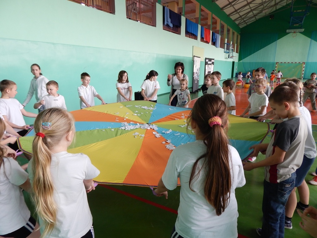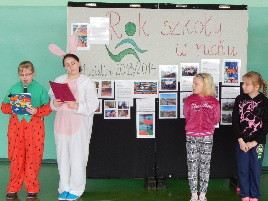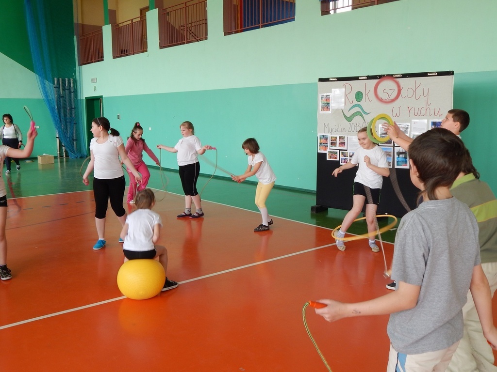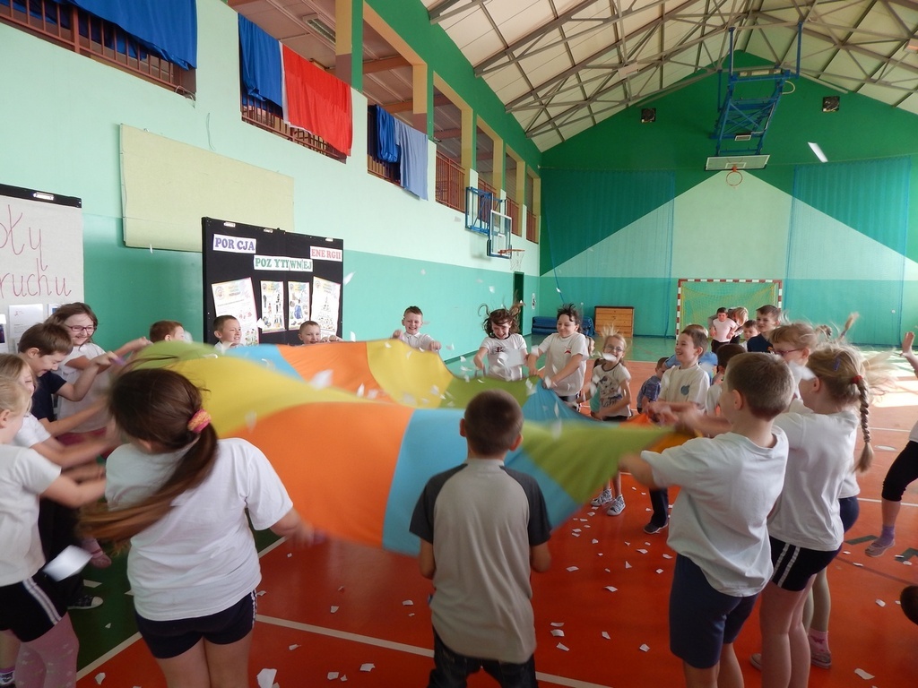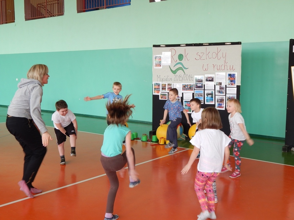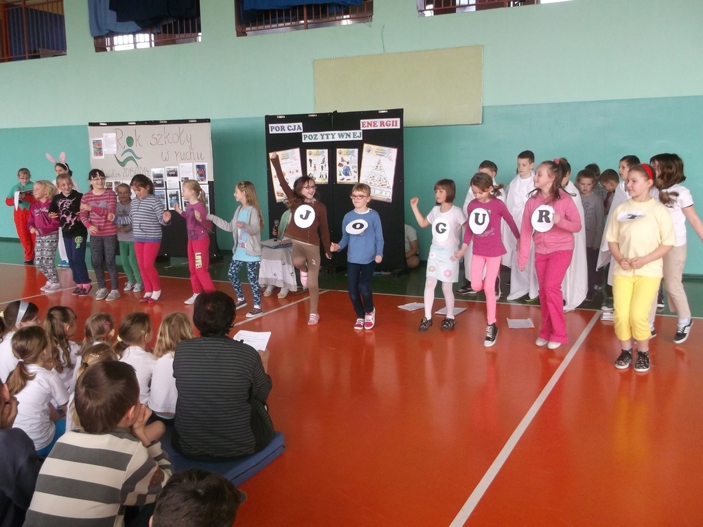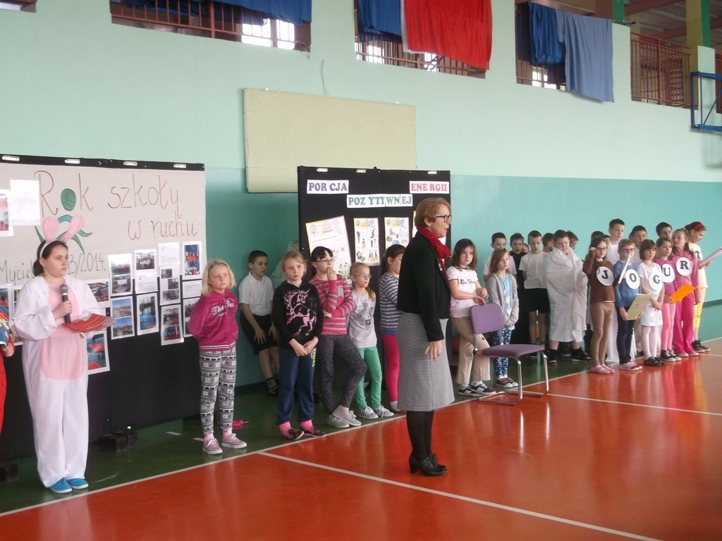 i właściwego odżywiania, dlatego zakończenie odbyło się na sportowo. Klasy młodsze zaprezentowały całej społeczności szkolnej wybrane zabawy i ćwiczenia oraz przedstawienie na temat „Żyj zdrowo”.