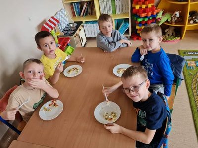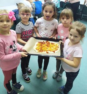 Przepyszna pizza w wykonaniu przedszkolaków.