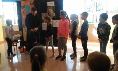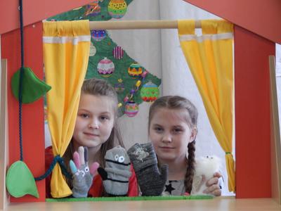 W rękawiczkowym teatrzyku - uczniowie klasy...